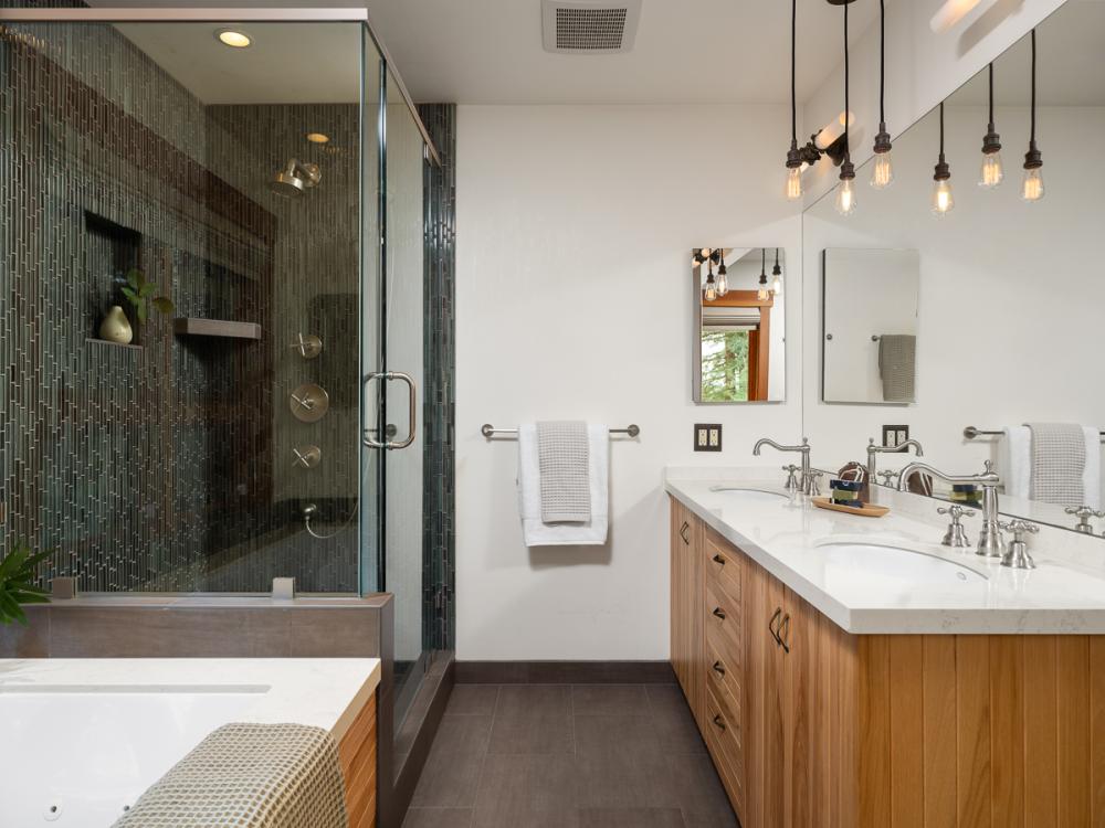 • Natural wood finishes and custom cabinetry