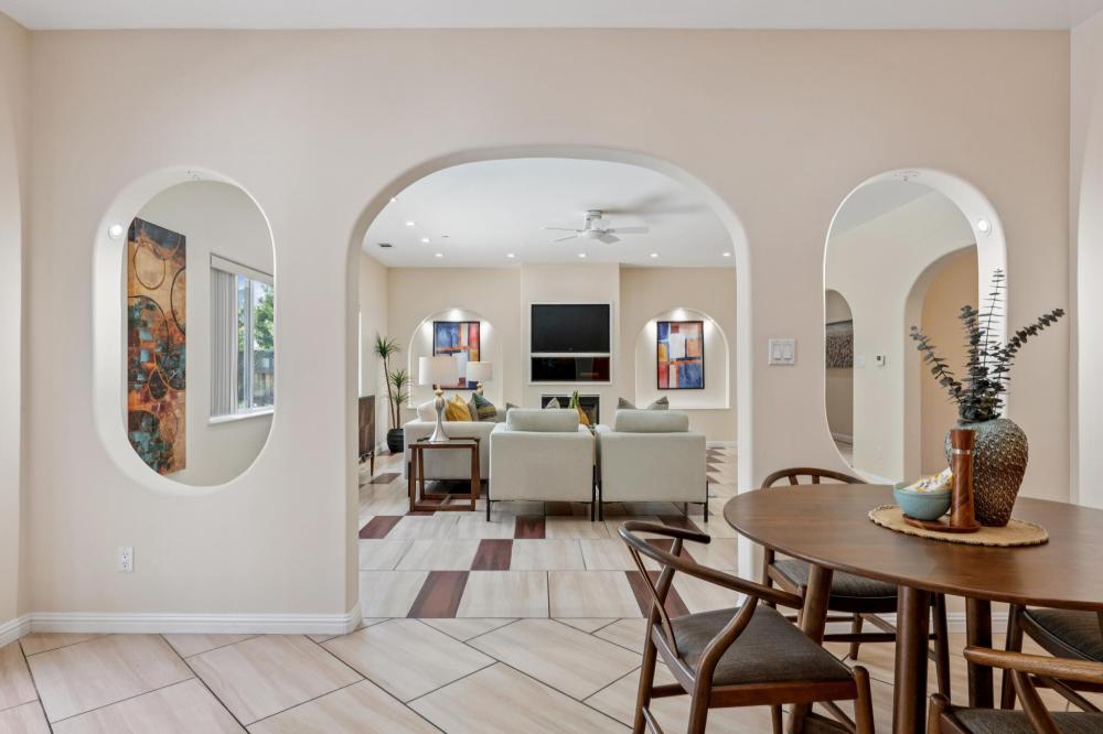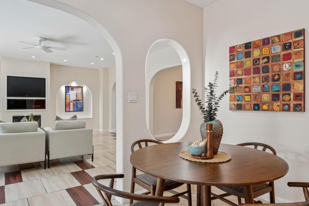 Designed for both everyday living and entertaining, the home transitions naturally to the outdoor spaces, where a pool, hot tub, and covered area for dining create a relaxed setting for hosting or unwinding. The yard offers ample space for larger gatherings while still maintaining a sense of privacy.