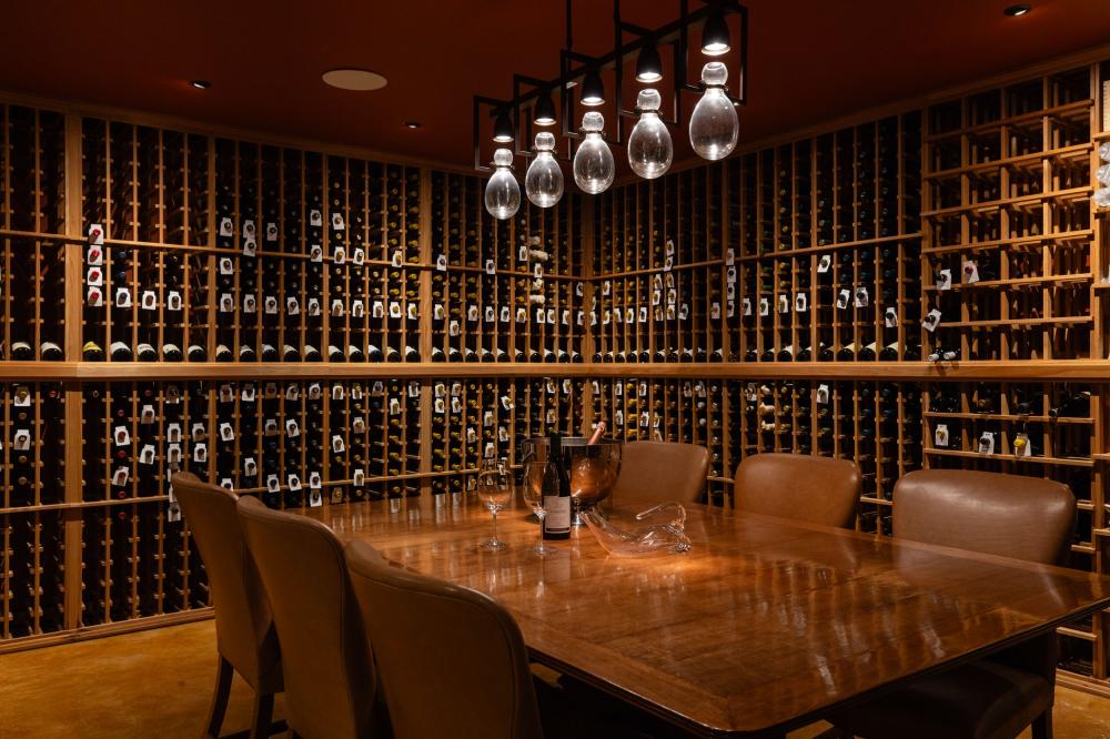 The primary suite is a true retreat with a sitting area, private balcony, and spa-inspired bathroom with heated floors and bespoke millwork. Two additional ensuite bedrooms provide comfort and privacy for family or guests. A home office with a wall of glass overlooks the valley below. On the lower level, a 2,500-bottle wine cellar and tasting area invite relaxed entertaining.