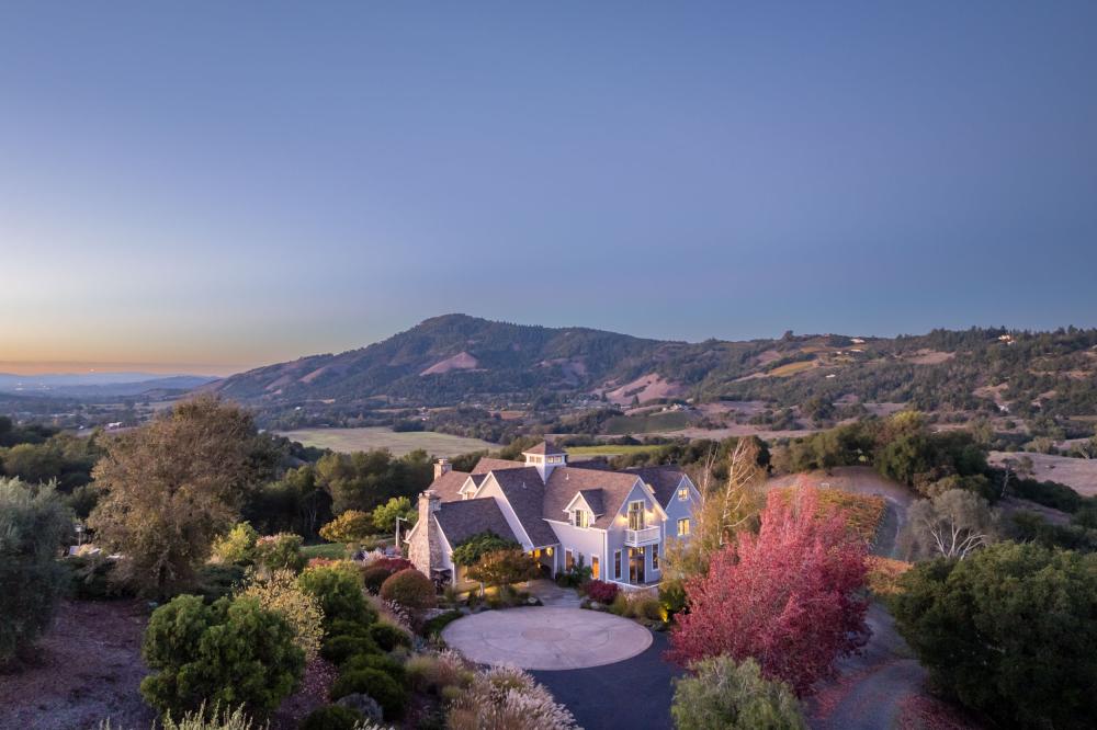 A private drive winds through vineyards and oak-studded hills to the gated entry. Once inside, every view reveals rolling ridgelines, distant vineyards, and open sky. The property’s elevation provides an unmatched sense of seclusion while remaining minutes from Glen Ellen and Santa Rosa’s amenities.