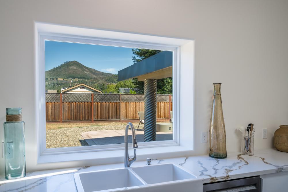 Farmhouse sink with Sugarloaf Mountain view