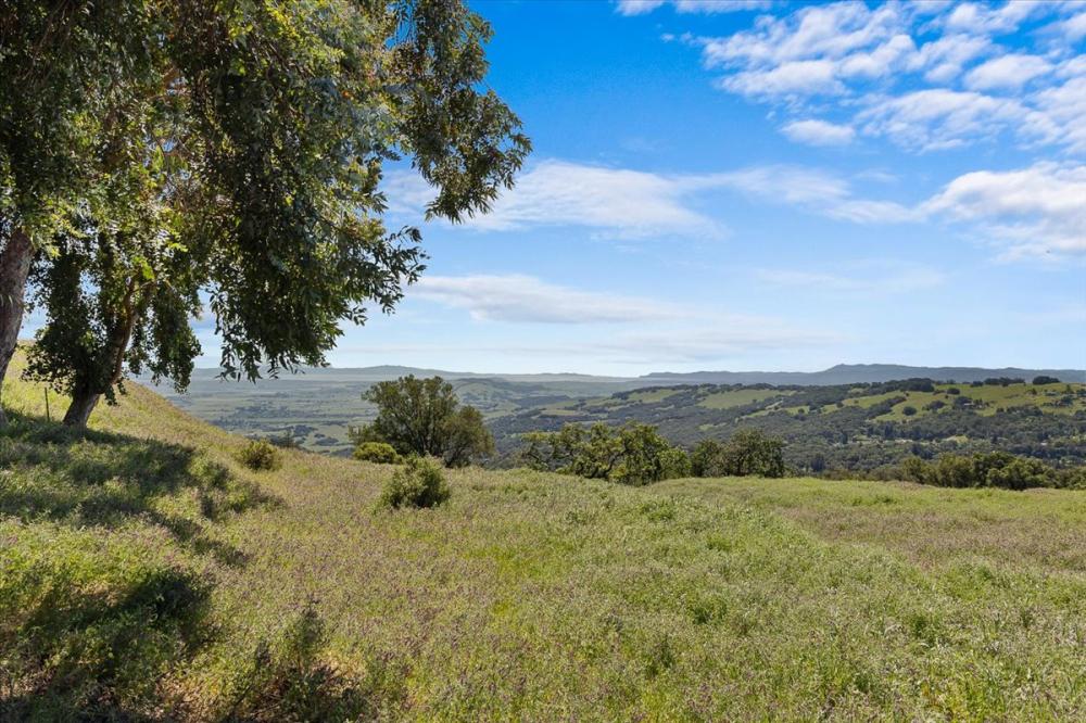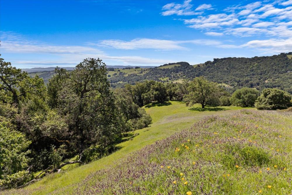 From the designated building envelope, the outlook stretches across roughly 200 degrees, capturing views of the Sonoma Delta, Mt. Diablo, the San Francisco skyline, Berkeley, Mt. Tamalpais, and the surrounding coastal and inland mountain ranges. In the spring, the landscape is dotted with wild lupine, adding seasonal color to an already striking setting.