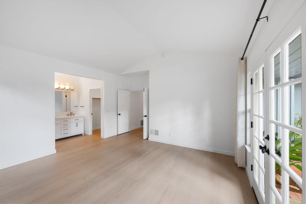 Spacious primary suite with large bath and patio access